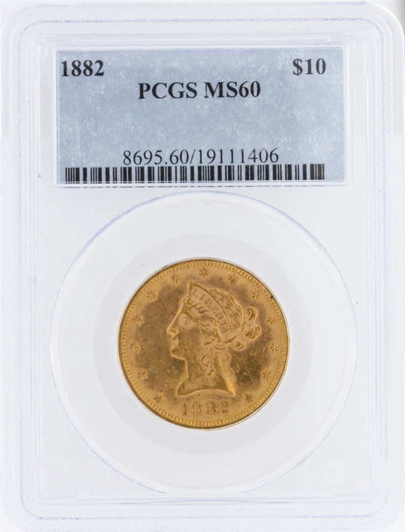 One 1882 PCGS MS60 $10 Liberty Head Eagle Gold Coin. PCGS Certified.