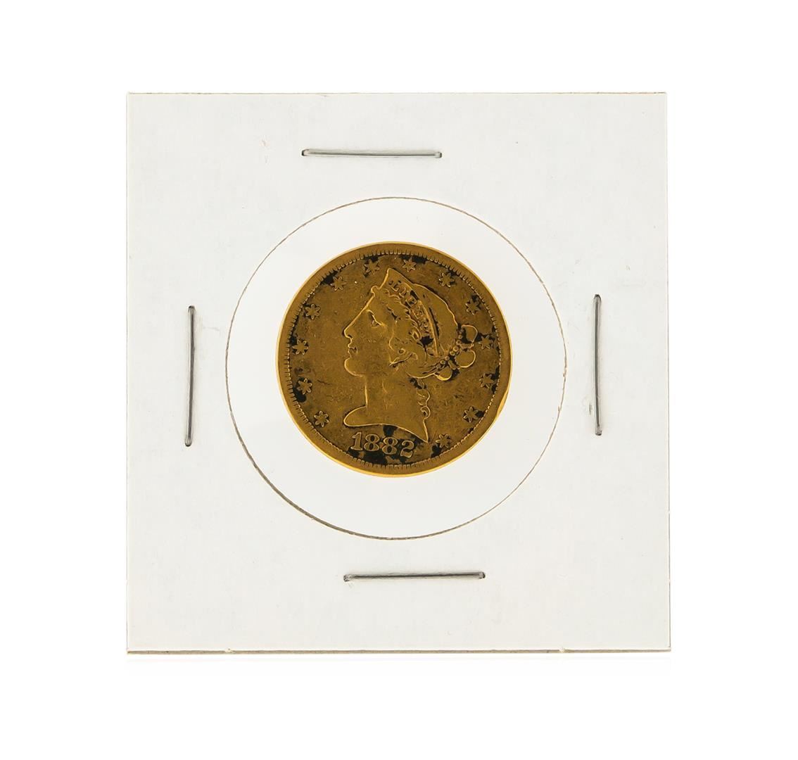 One 1882-S $5 Liberty Head Half Eagle Gold Coin.
