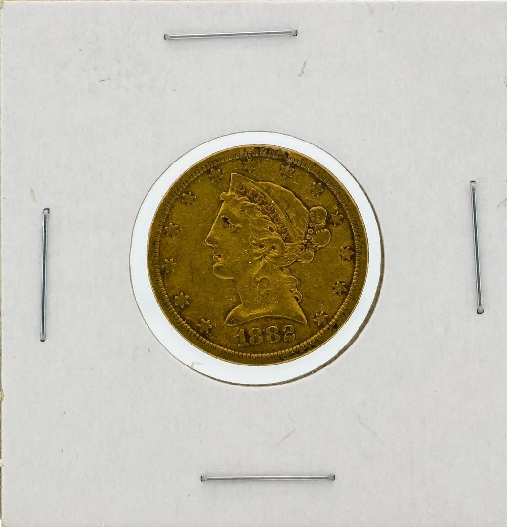 One 1882-S $5 VF Liberty Head Half Eagle Gold Coin.