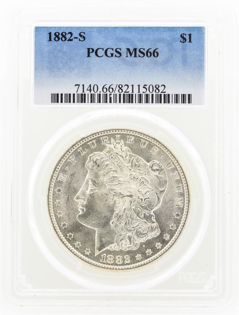 One 1882-S MS66 Morgan Silver Dollar.