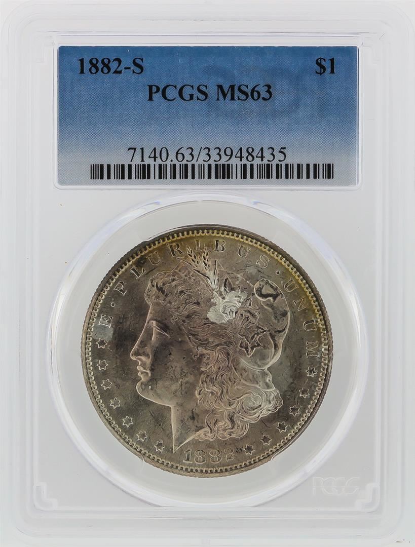 One 1882-S PCGS MS63 Morgan Silver Dollar. PCGS Certified.