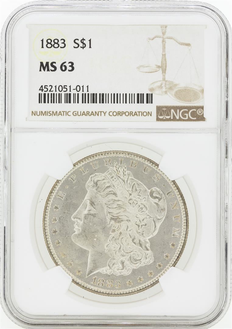 One 1883 MS63 NGC Morgan Silver Dollar NGC Certified.