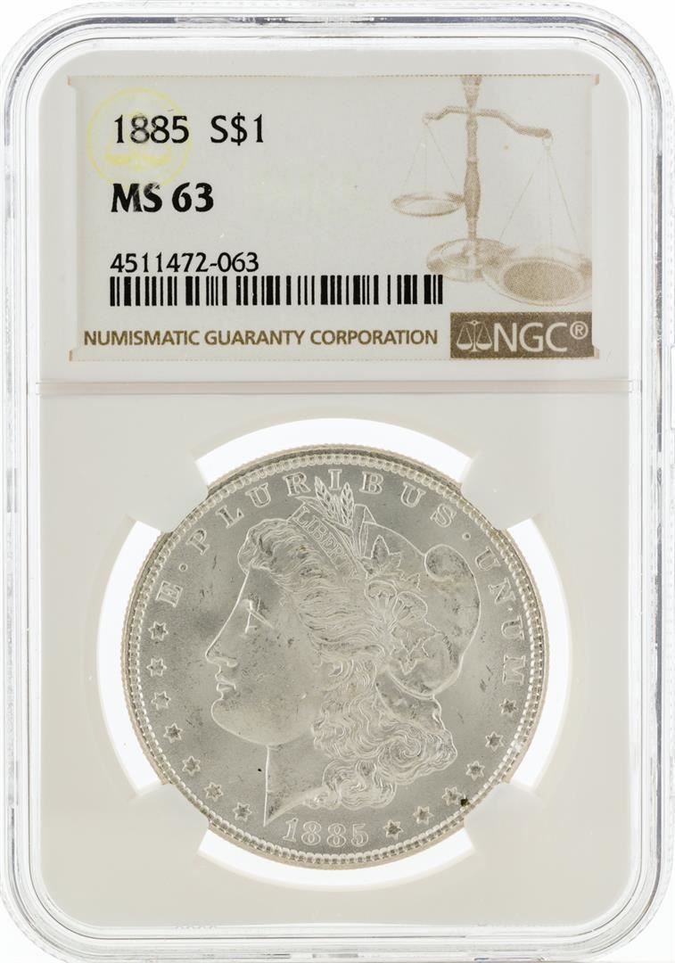 One 1885 NGC MS63 Morgan Silver Dollar. NGC Certified.
