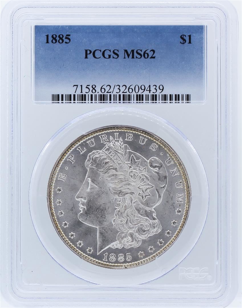One 1885 PCGS MS62 Morgan Silver Dollar. PCGS Certified.