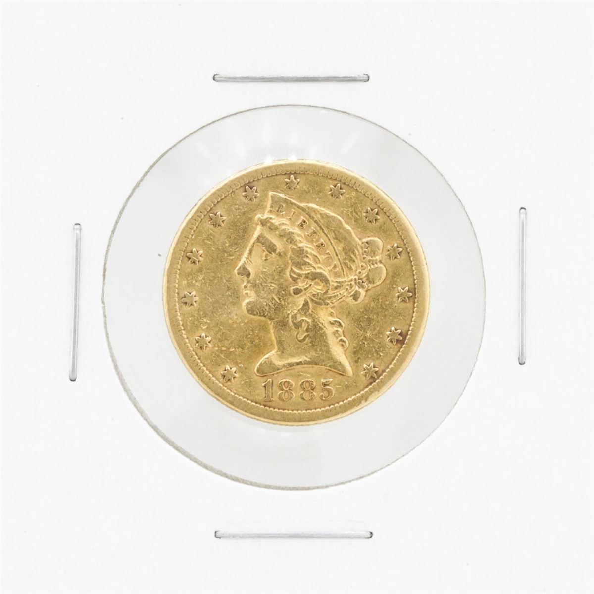One 1885-S $5 VF Liberty Head Half Eagle Coin.