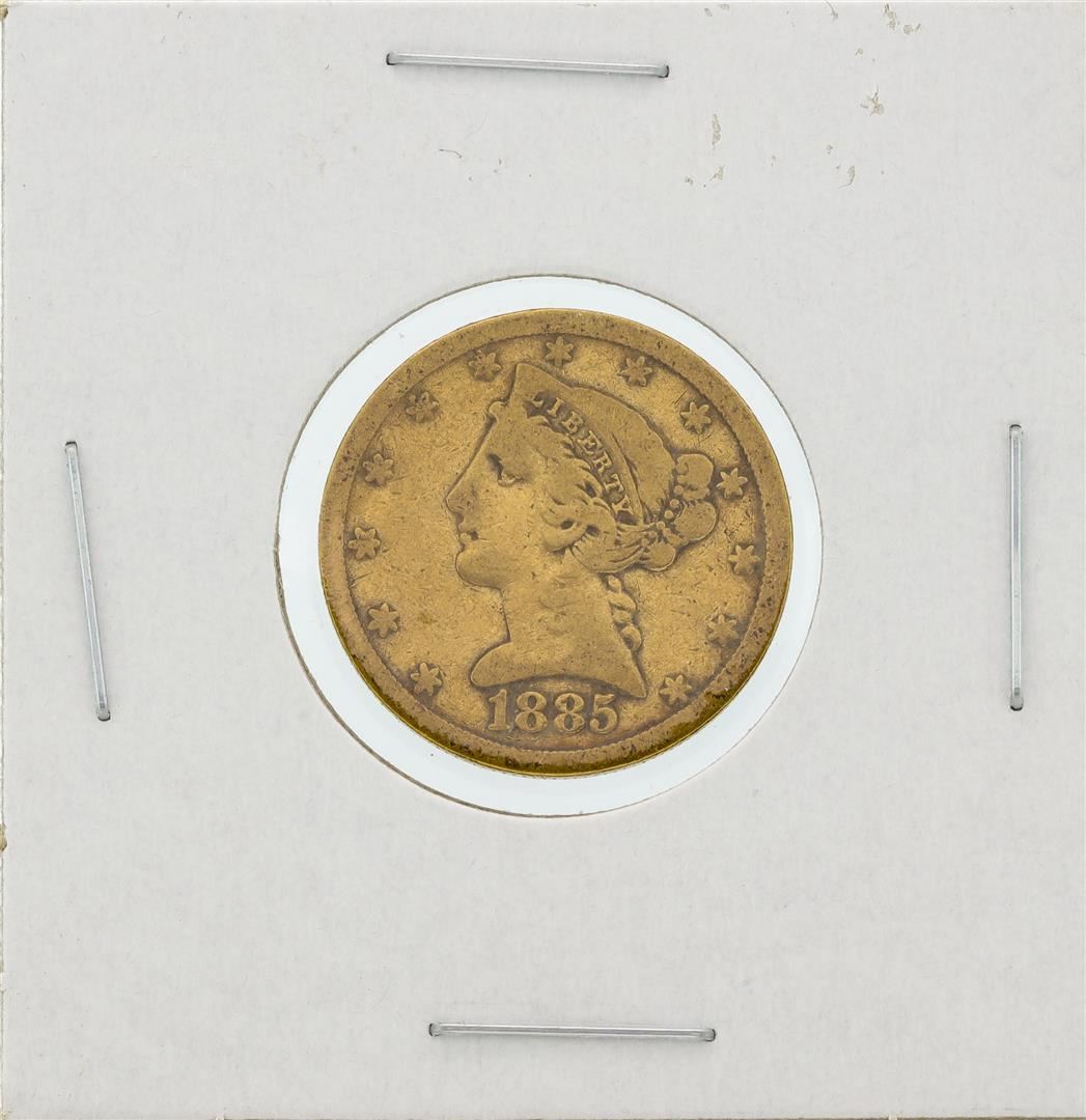 One 1885-S $5 VF Liberty Head Half Eagle Gold Coin.