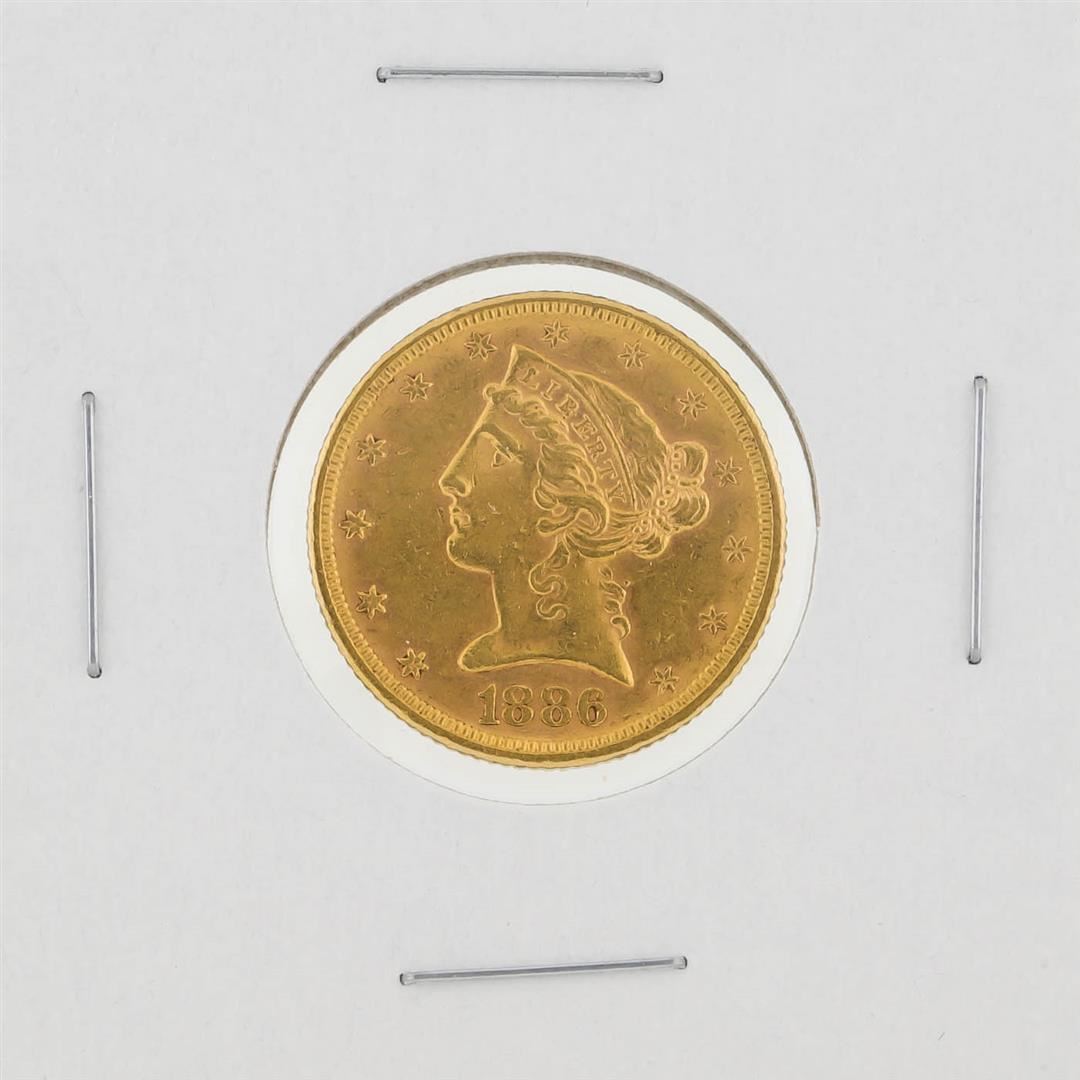 One 1886 $5 Liberty Head Half Eagle Gold Coin.