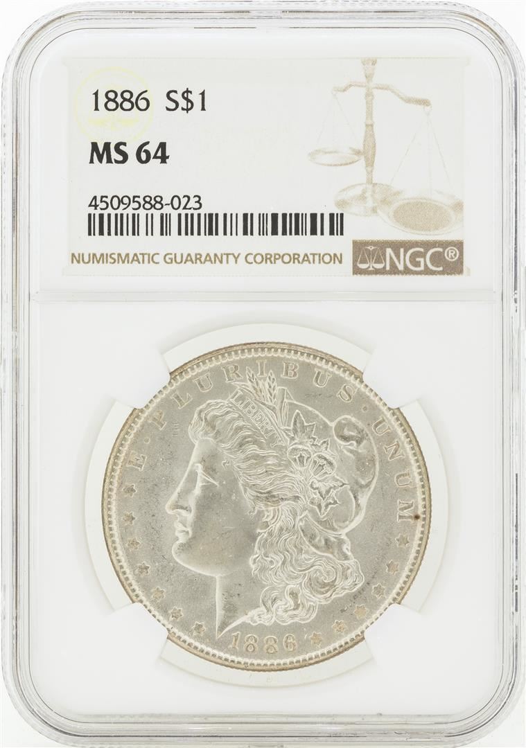 One 1886 MS64 NGC Morgan Silver Dollar NGC Certified.