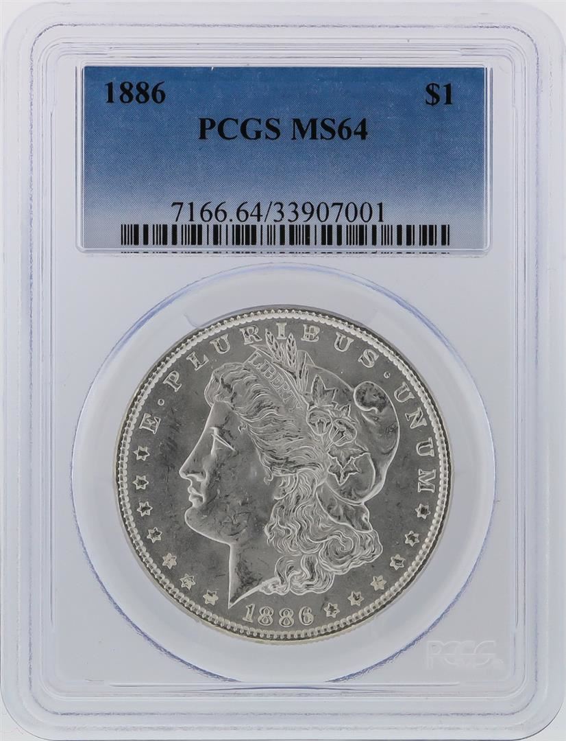 One 1886 PCGS MS64 Morgan Silver Dollar. PCGS Certified.