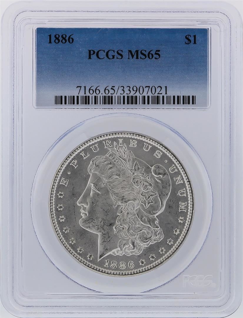 One 1886 PCGS MS65 Morgan Silver Dollar. PCGS Certified.