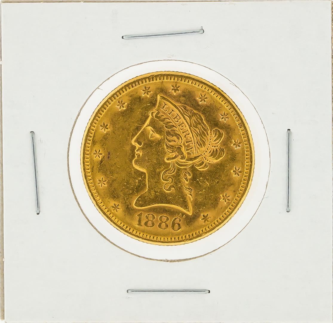 One 1886-S $10 AU Liberty Head Eagle Gold Coin.