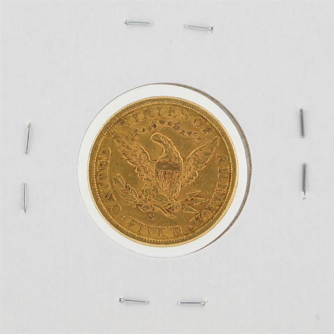 One 1886-S $5 AU Liberty Head Half Eagle Gold Coin.