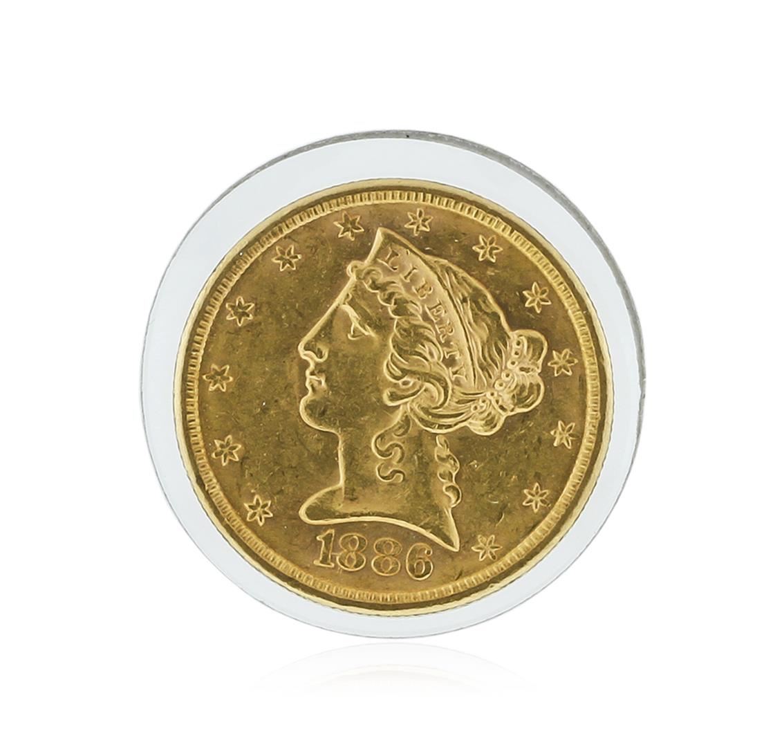 One 1886-S $5 CU Liberty Head Half Eagle Gold Coin.