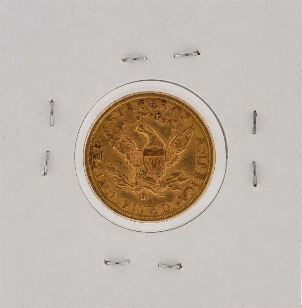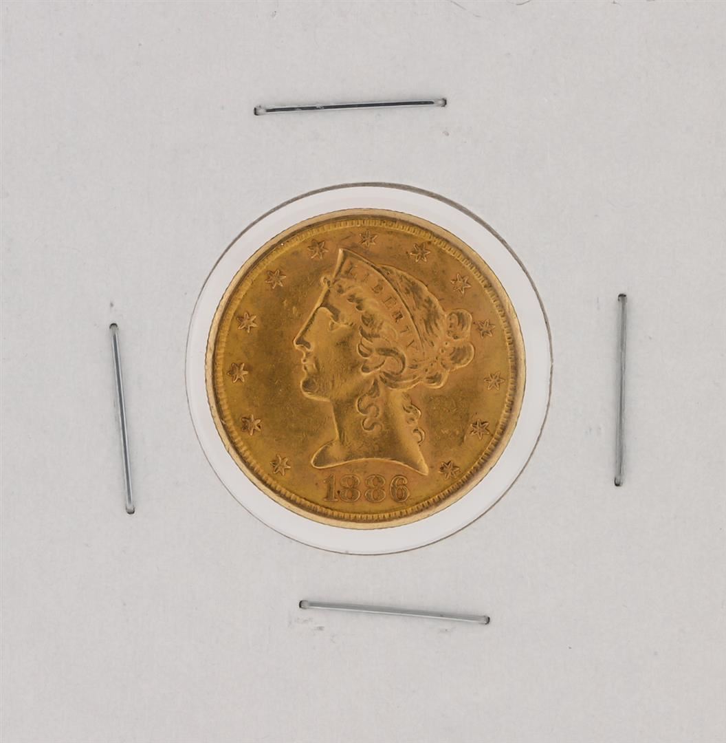 One 1886-S $5 Liberty Head Half Eagle Coin.