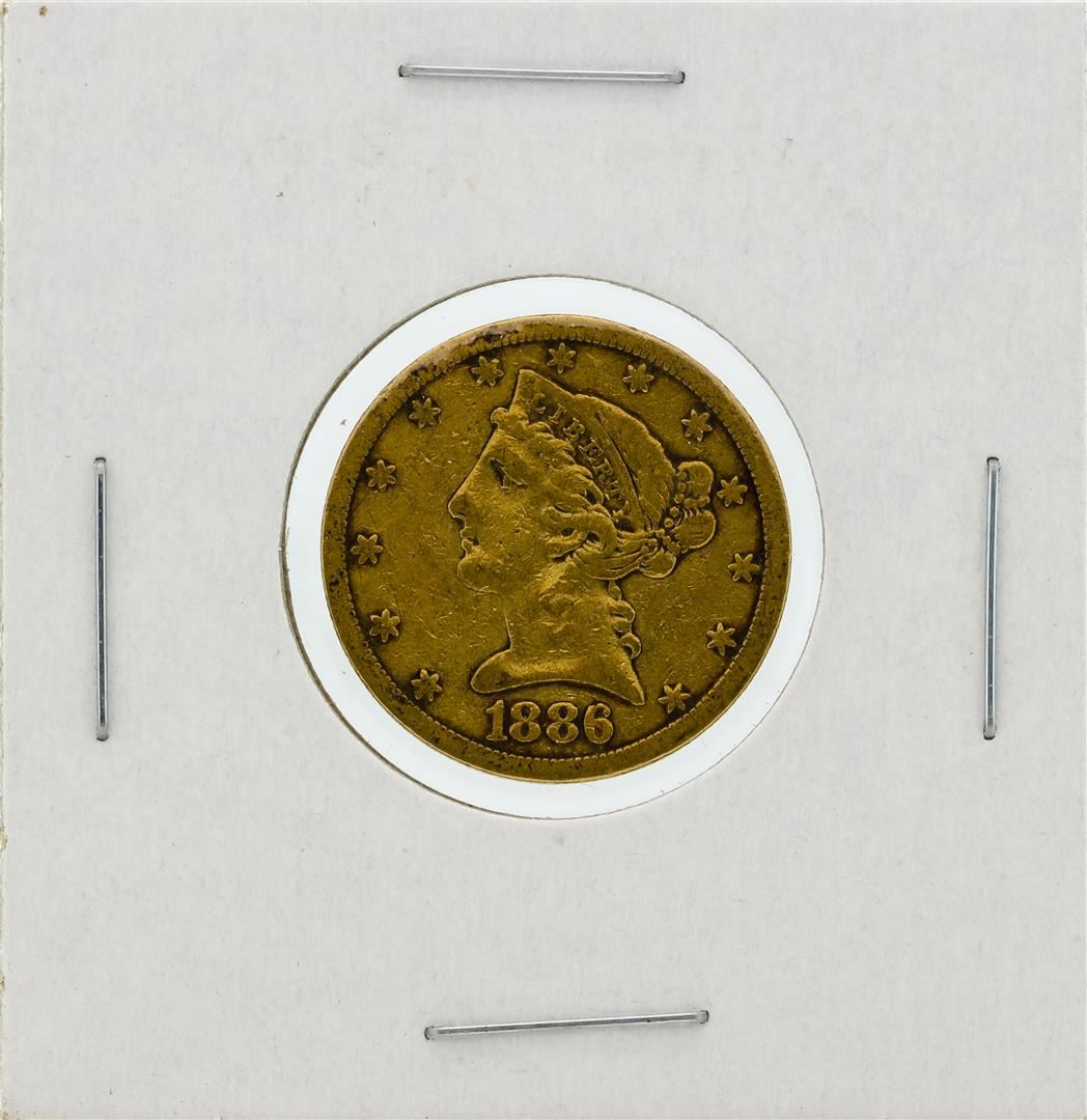 One 1886-S $5 VF Liberty Head Half Eagle Gold Coin.