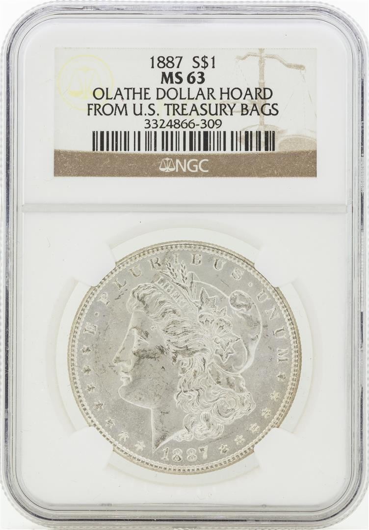One 1887 MS63 NGC Morgan Silver Dollar NGC Certified.