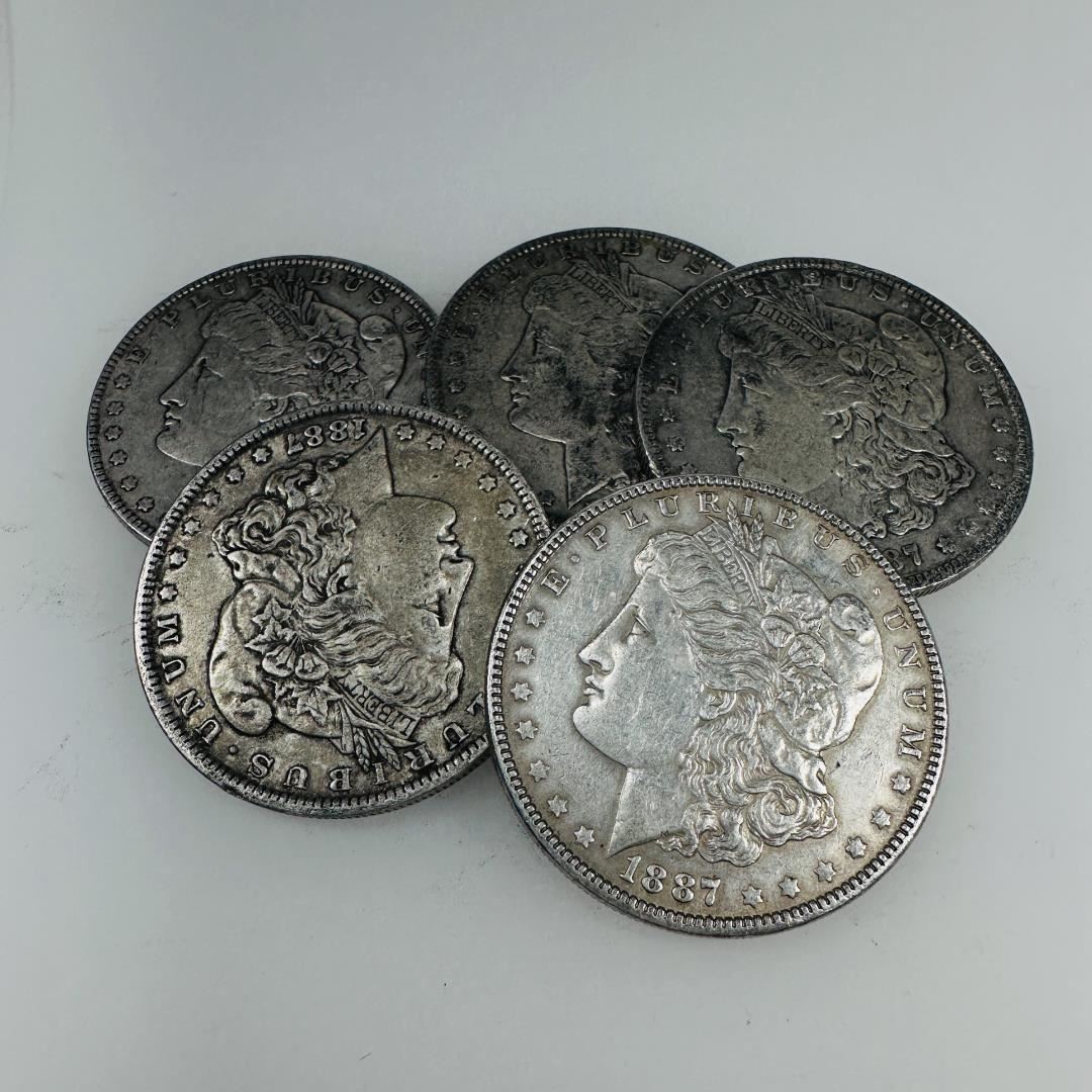 Add variety to your collection with this VG+ set of five 1887 Morgan Silver Dollars. These coins highlight the enduring appeal of the Morgan design and are a testament to the legacy of American coinage. A must-have set for collectors seeking multiples of this iconic year.