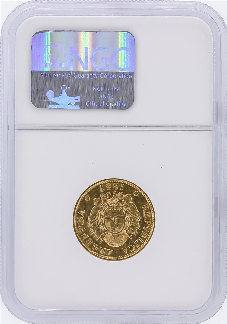 One 1887 NGC AU53 Argentina 5 Pesos Gold Coin. NGC Certified.