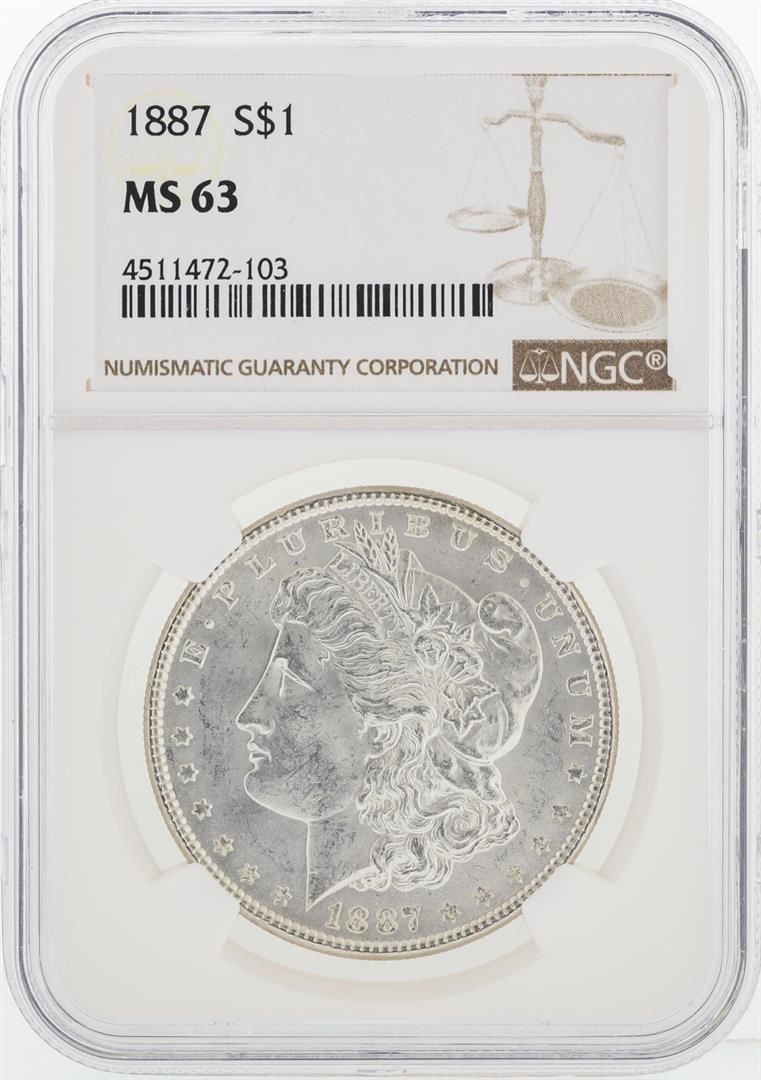 One 1887 NGC MS63 Morgan Silver Dollar. NGC Certified.