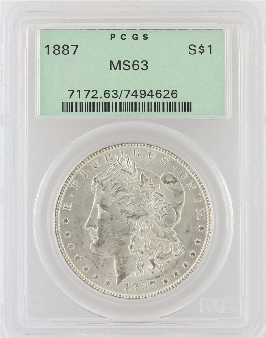 One 1887 PCGS MS63 Morgan Silver Dollar. PCGS Certified.
