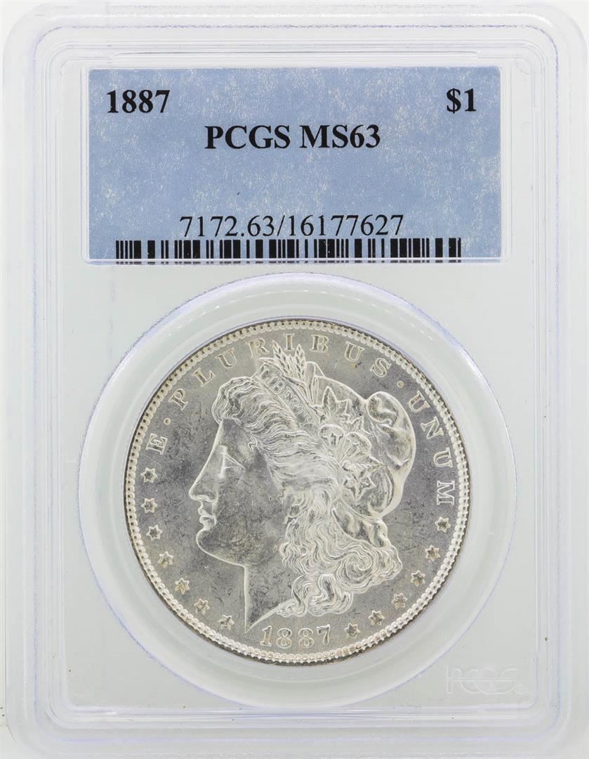 One 1887 PCGS MS63 Morgan Silver Dollar. PCGS Certified.