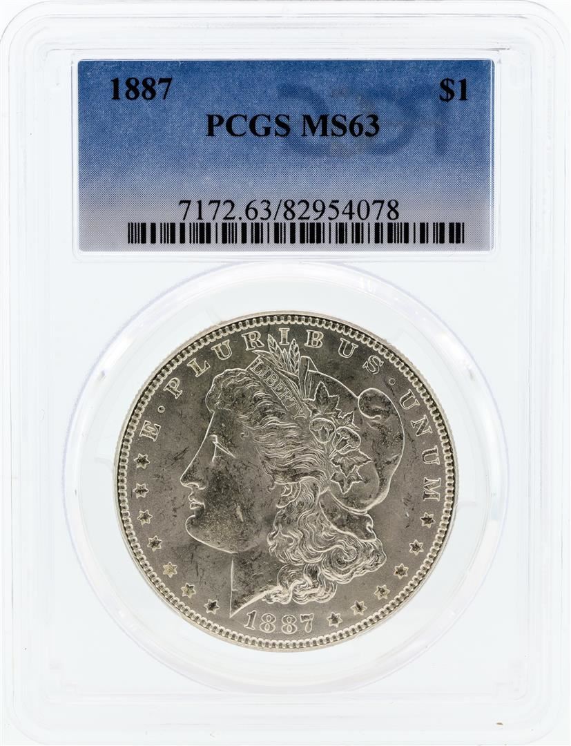 One 1887 PCGS MS63 Morgan Silver Dollar.