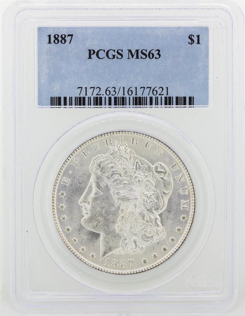 One 1887 PCGS MS63 Morgan Silver Dollar. PCGS Certified.