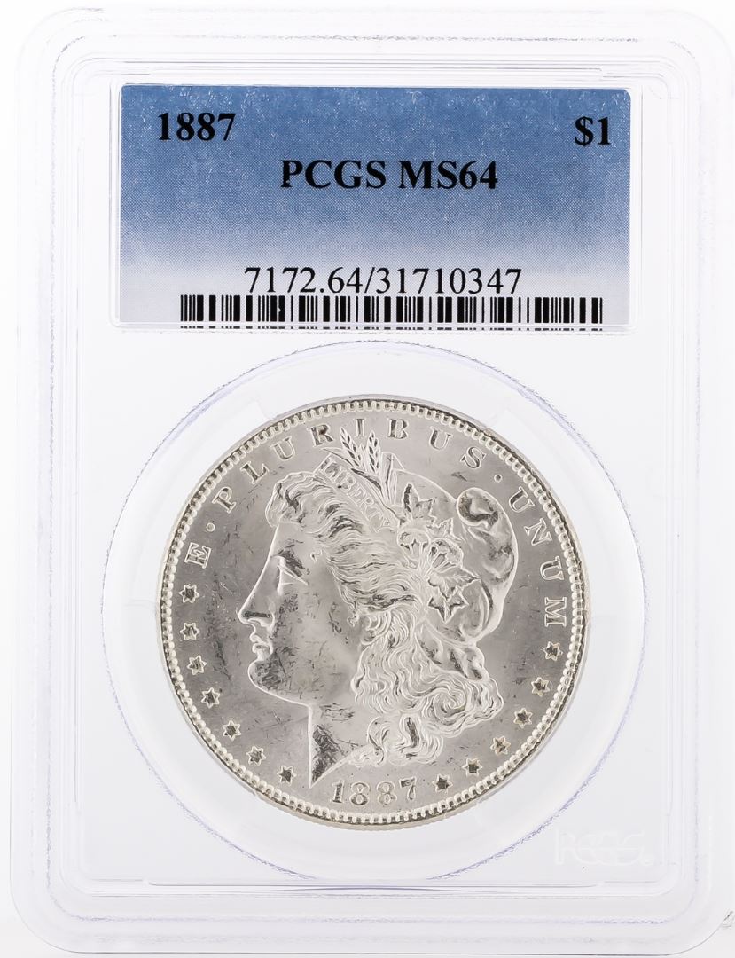 One 1887 PCGS MS64 Morgan Silver Dollar. PCGS Certified.