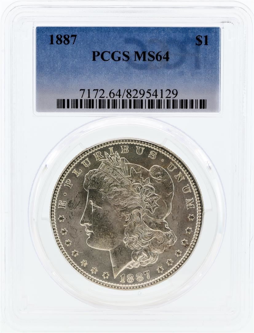 One 1887 PCGS MS64 Morgan Silver Dollar.