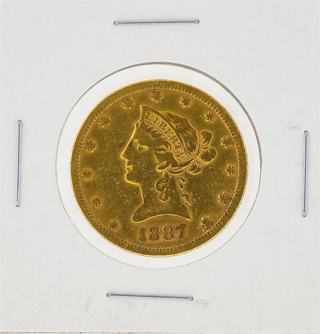 One 1887-S $10 VF Liberty Head Eagle Gold Coin.