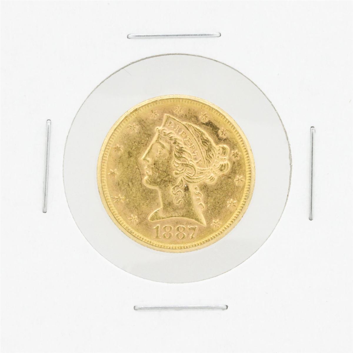 One 1887-S $5 BU Liberty Head Half Eagle Coin.