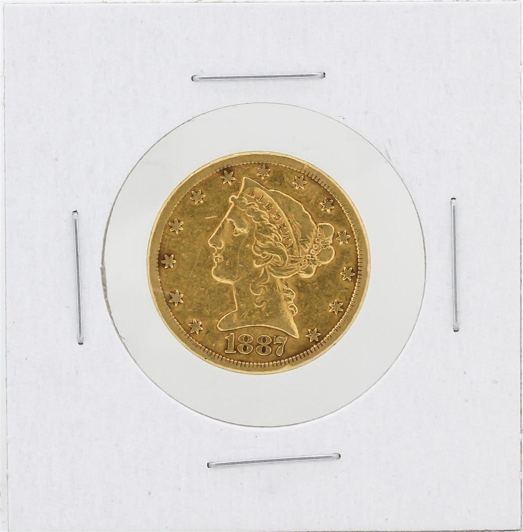 One 1887-S $5 VF Liberty Head Half Eagle Gold Coin.