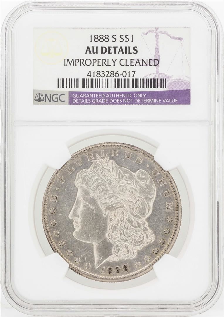 One 1888-S $1 Morgan Silver Dollar Coin NGC AU Details. NGC Certified.