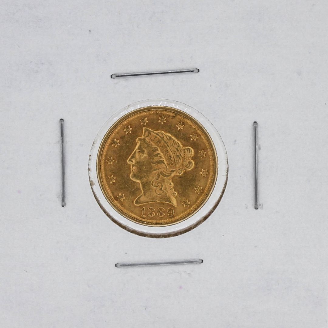 One 1889 $2.50 CU Liberty Head Quarter Eagle Gold Coin.