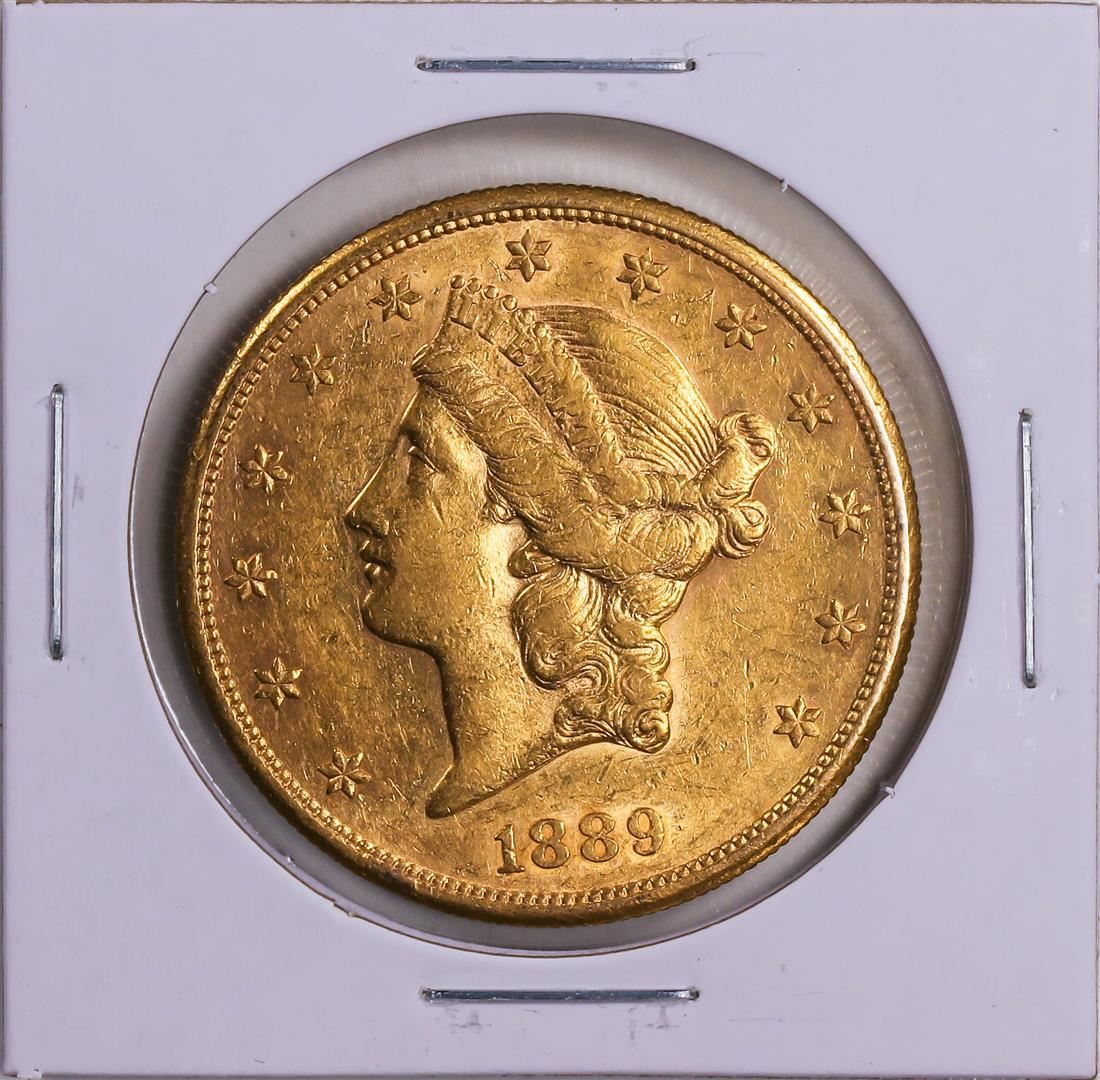 One 1889 $20 Liberty Head Double Eagle Gold Coin VF.