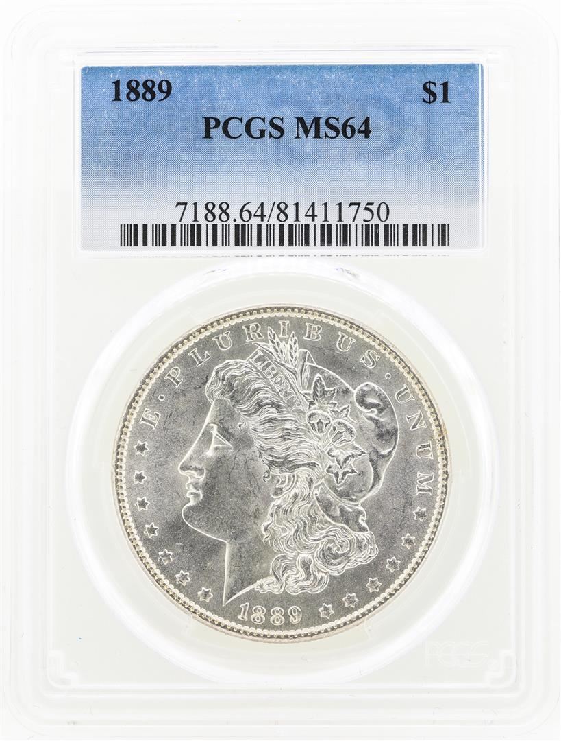 One 1889 MS64 Morgan Silver Dollar.