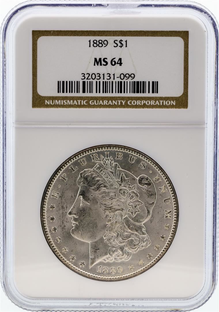 One 1889 PCGS MS64 Morgan Silver Dollar.