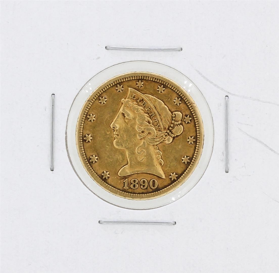 One 1890-CC $5 XF Liberty Head Half Eagle Gold Coin.