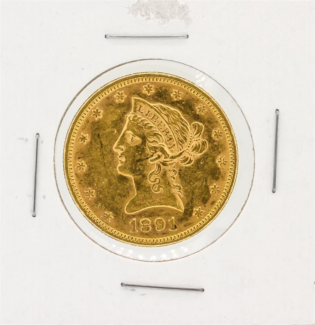 One 1891 $10 CU Liberty Head Eagle Gold Coin.