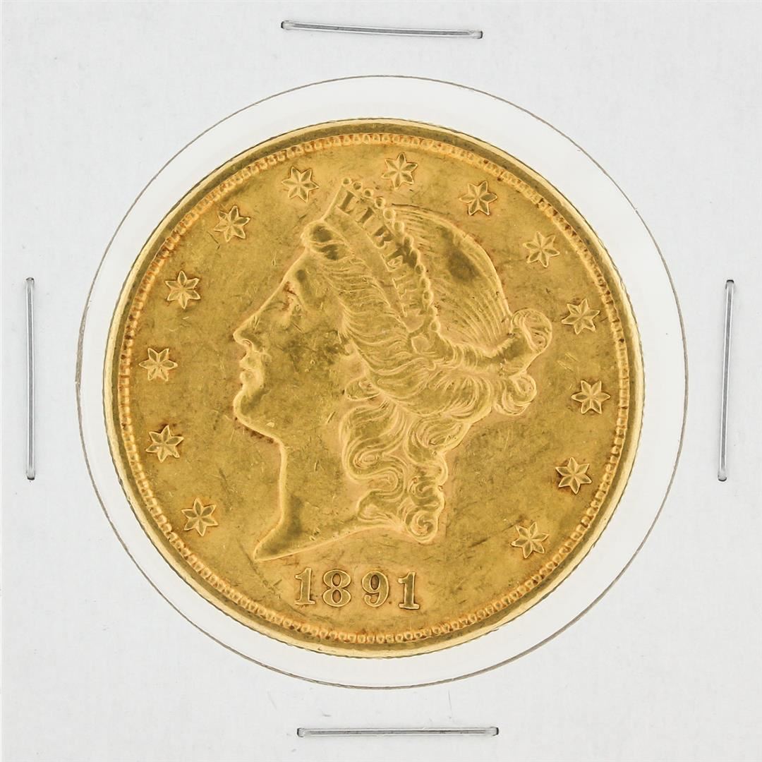 One 1891-S $20 AU Liberty Head Double Eagle Coin.