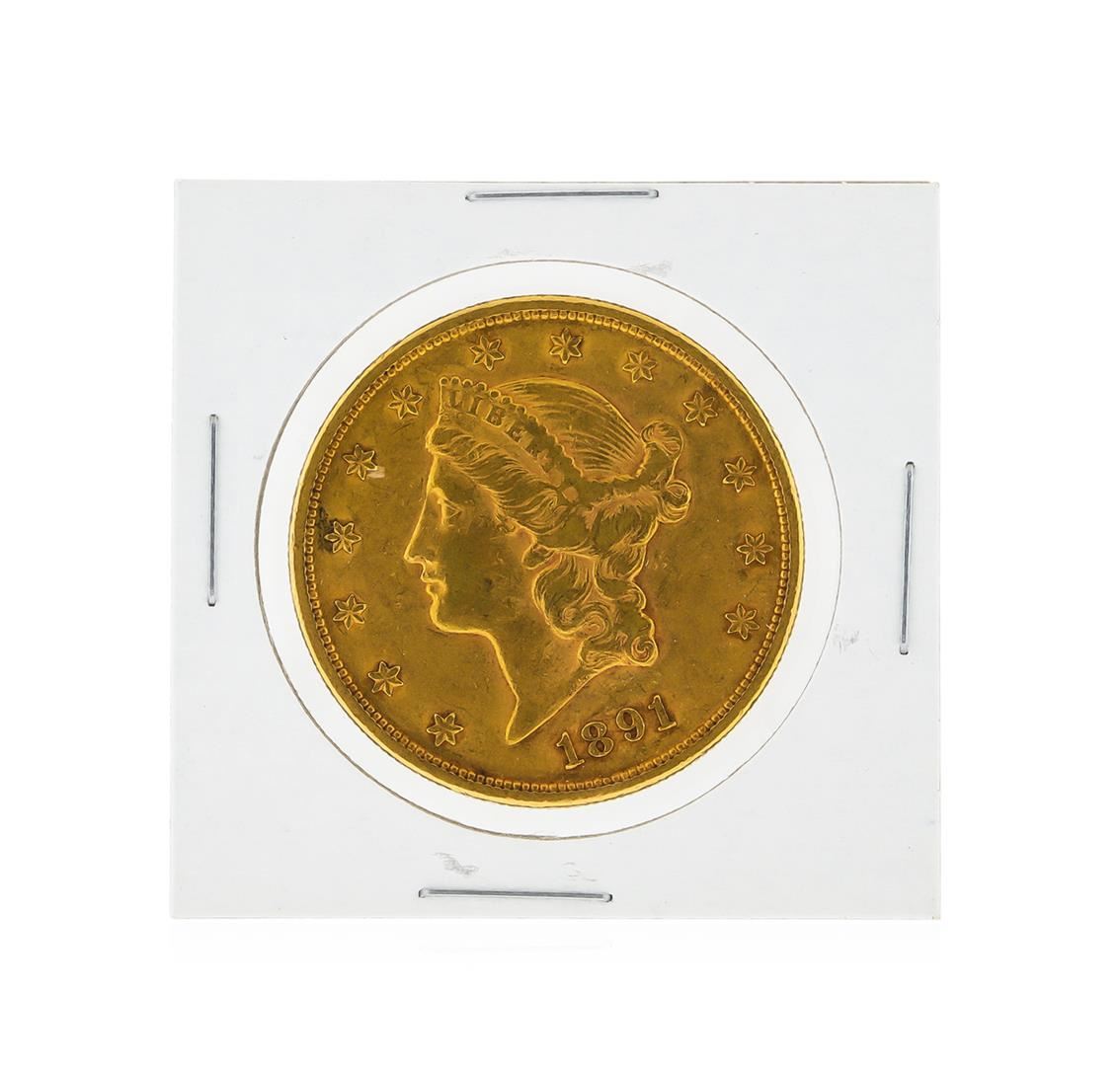 One 1891-S $20 XF Liberty Head Double Eagle Gold Coin.