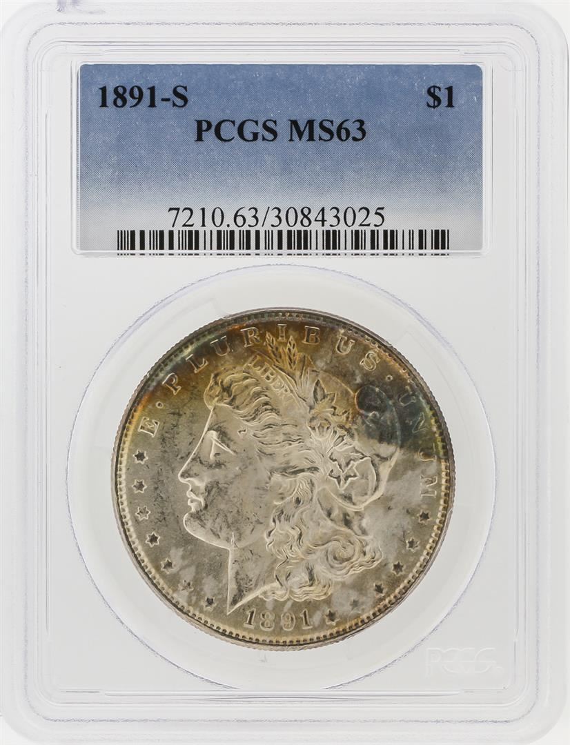 One 1891-S PCGS MS63 Morgan Silver Dollar. PCGS Certified.