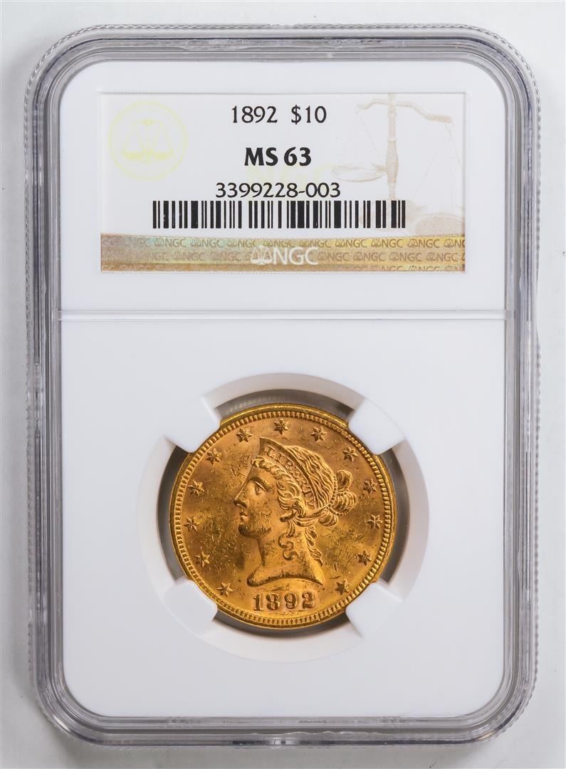 One 1892 $10 Eagle Gold Coin NGC MS63.