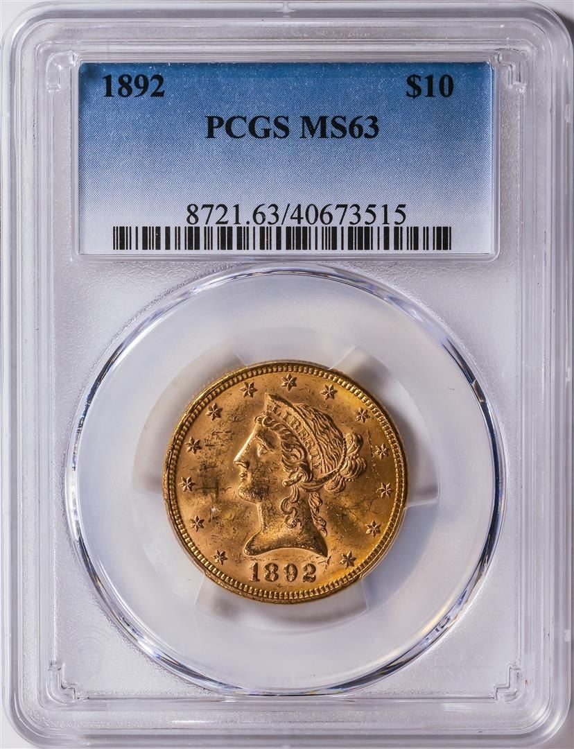 One 1892 $10 Liberty Head Eagle Gold Coin PCGS MS63.