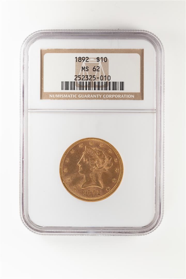 One 1892 $10 Liberty Head Eagle Gold Coin.