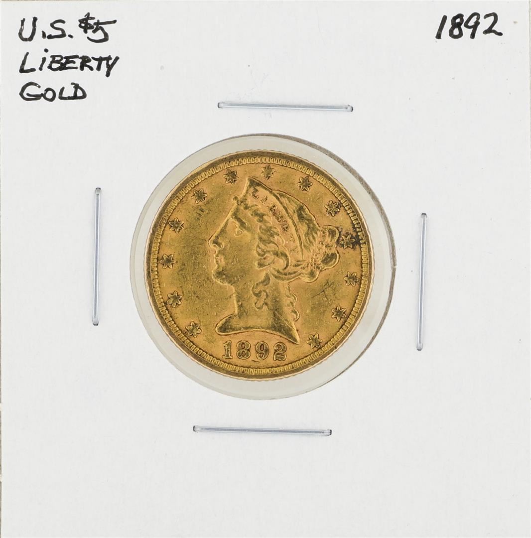 One 1892 $5 Liberty Head Half Eagle Gold Coin.