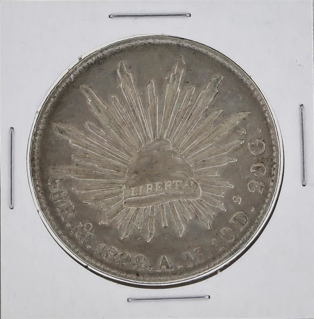One 1892 MoAM Mexico 8 Reales Silver Coin KM 377.10.