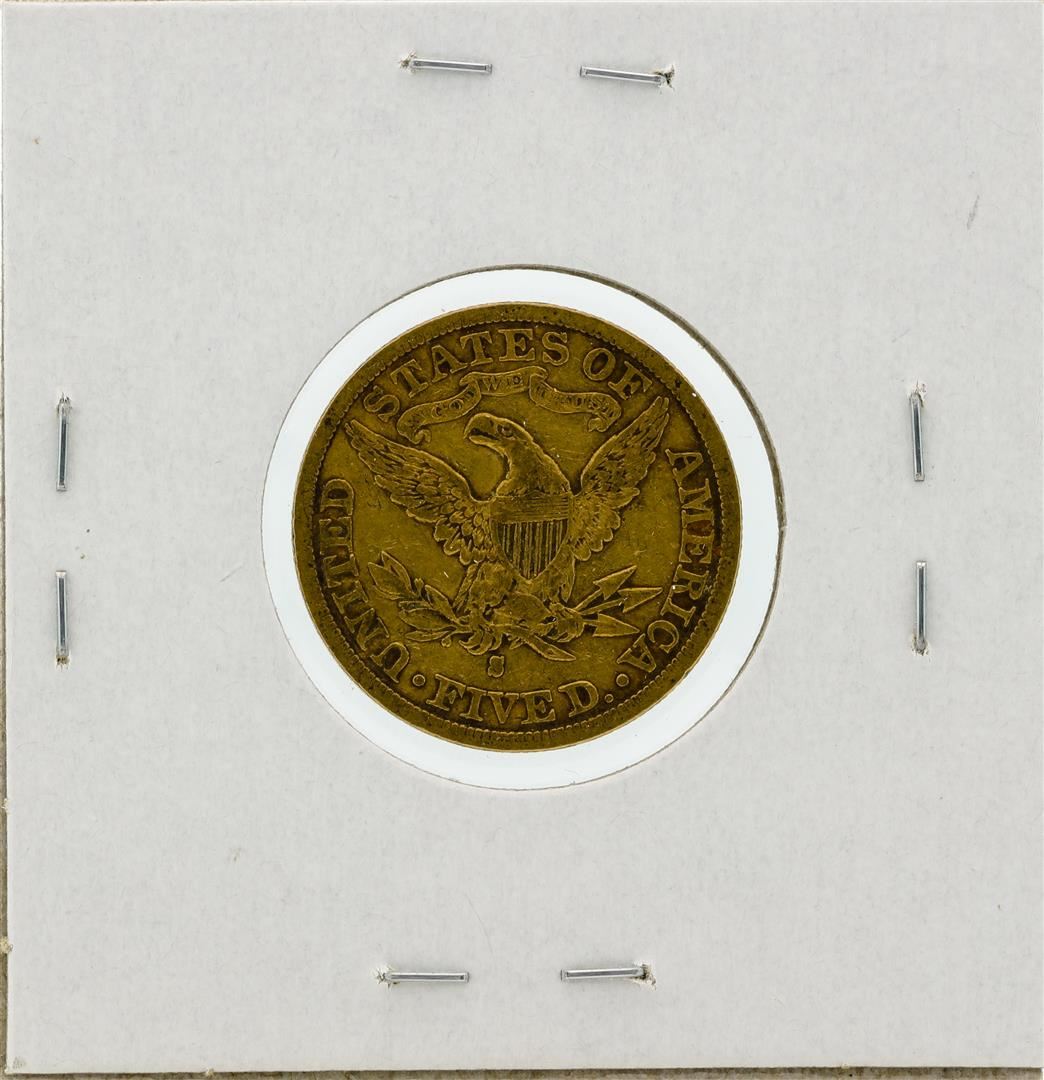 One 1892-S $5 VF Liberty Head Half Eagle Gold Coin.