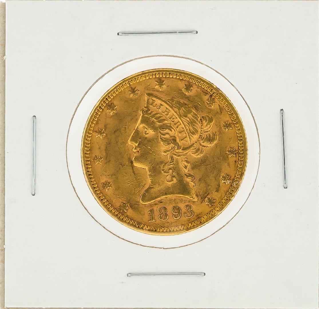 One 1893 $10 AU Liberty Head Eagle Gold Coin.