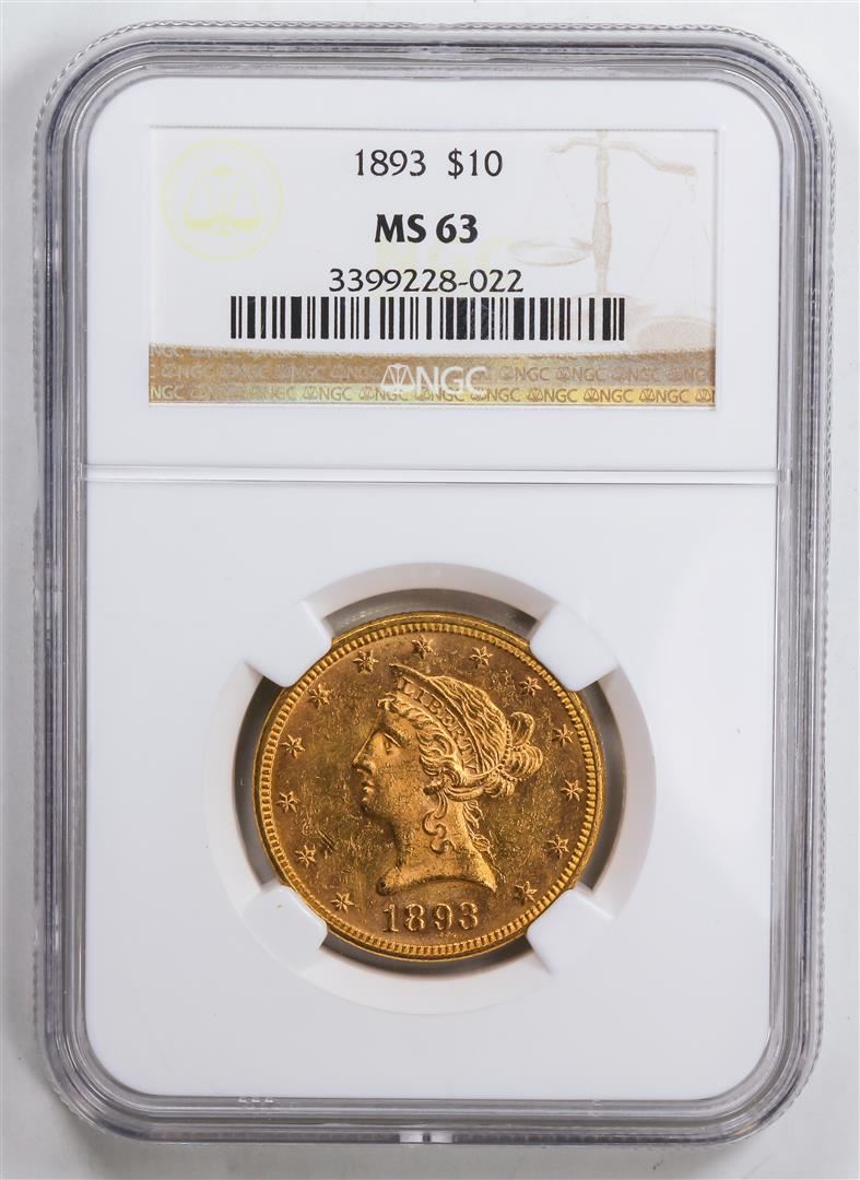 One 1893 $10 Eagle Gold Coin NGC MS63.